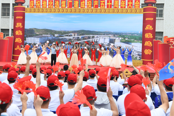 隨后,慶祝該廠建成投產(chǎn)50周年文藝演出開始。友鄰單位鐵運處、臨渙選煤廠、神源煤化工同該廠職工一起,自編自演,先后帶來了舞蹈、詩朗誦、歌曲、戲曲聯(lián)唱等節(jié)目,給現(xiàn)場觀眾呈現(xiàn)了一場唯美震撼的視覺盛宴,展現(xiàn)了淮選50年發(fā)展的巨大成就,以及淮選人接力傳承,接續(xù)奮斗的精神面貌。