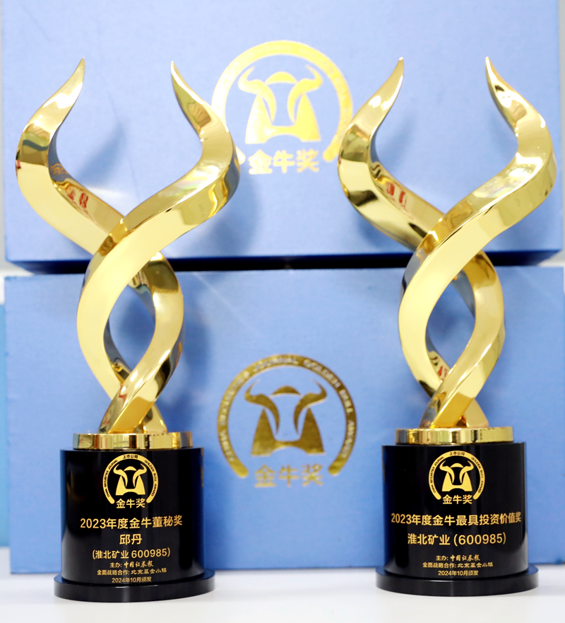 2024年10月24日,由中國證券報與南通市人民政府主辦、北京基金小鎮(zhèn)全面戰(zhàn)略合作的2024上市公司高質量發(fā)展論壇暨第二十六屆上市公司金牛獎頒獎典禮于江蘇南通舉行,淮北礦業(yè)以穩(wěn)健提升的治理能力、高質量的信息披露、重視股東回報增進價值等方面的優(yōu)異表現(xiàn),榮獲“2023年度金牛最具投資價值獎”,公司董事會秘書邱丹榮獲“2023年度金牛董秘獎”。
