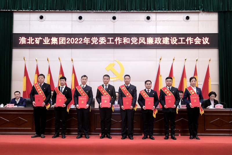 葛春貴宣讀《淮北礦業集團黨委關于表彰2021年度先進基層黨組織、優秀共產黨員和優秀黨務工作者的決定》。與會領導為受表彰的淮北礦業集團先進黨委以及先進黨支部、優秀共產黨員、優秀黨務工作者代表頒獎。